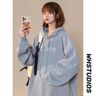 ニット パーカー 秋冬 新作 レディース ゆるい BF 百掛け 学生 トップス スウェット ジャージ