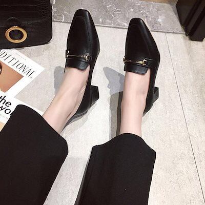 パンプス 秋靴 レディース レザーシューズ ローファー オックスフォードシューズ パンプス 中ヒール 黒 太めヒール 歩きやすい 革靴 通勤通学 カジュアル