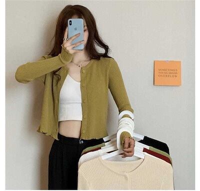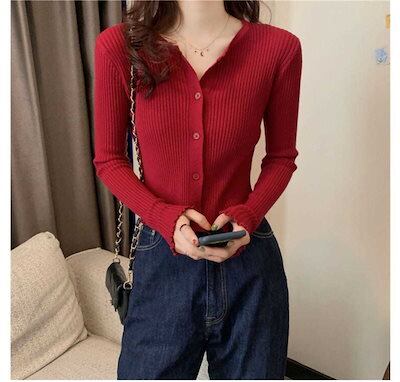 ジャケット トップス 韓国ファッション カーディガン ベーシックニット ニットカーディガン 女性2021新しい 秋アウター ハイウエスト長袖 ボタン付きトップ タートルネック タートルネック韓国ファッ