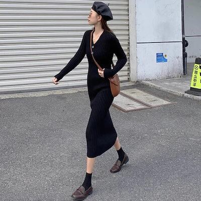 ニットワンピース2023年秋冬新作ファースカートロングコートウエストワンピースニットワンピース冬のワンピース