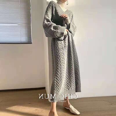 秋冬ニットワンピースフィッシュテールスカートワンピース韓国ファッションツイストニットワンピース 着痩せワンピース冬のワンピース