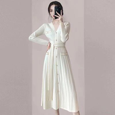 ニットワンピース ロングワンピース ワンピース 秋冬 気質 着痩せ おしゃれ