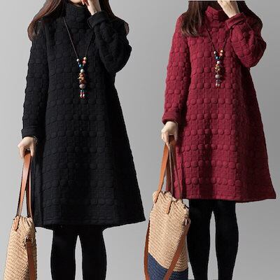 4colors 秋冬ワンピース着痩せビッグサイズでゆったり厚手の長袖ワンピース冬のワンピース