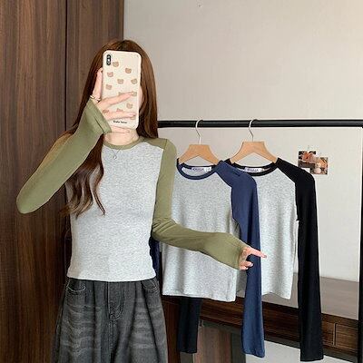 大人気!長袖Tシャツレディーススリミングセクシーガールスアンダーウェアギャル初秋韓国ファッション