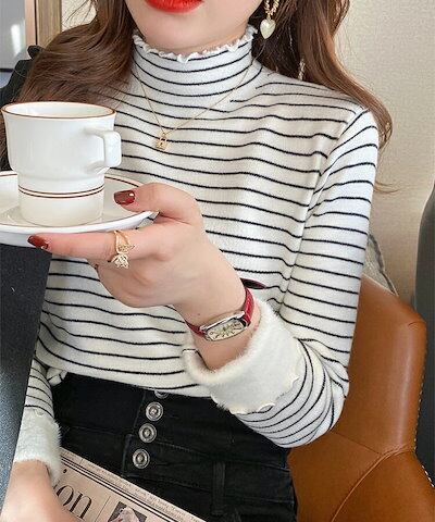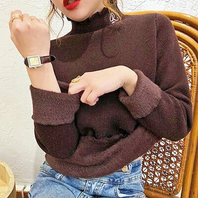 【2枚購入で 2oo円OFF!】秋 冬 裏起毛 セーター保温 暖かい 上質 リブ トップス レディース タイト シルエット ストレッチ カットソー 無地 秋冬 トップス