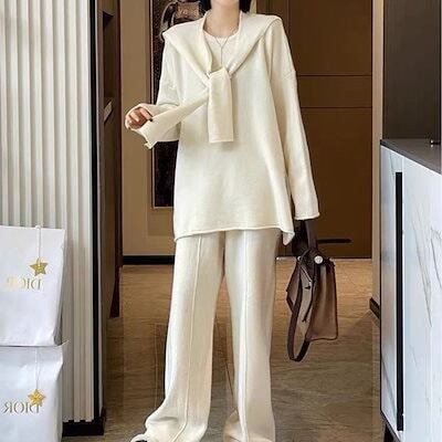 2024新作 ドレス ニットレトロスーツ カジュアル セットアップ 韓国風 ニット セットアップ レディース人気なリプニット