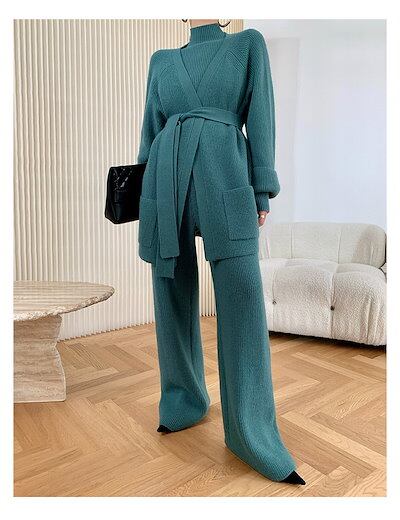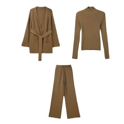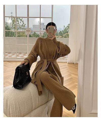 セットアップファッション ベーシックニット 冬でもブラウス パーカー ラウンドネックニット タートルネックニットカシミヤタッチ キルティングアウターニットパンツ タートルネック三点セット ニット