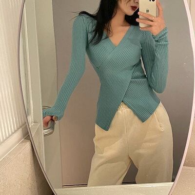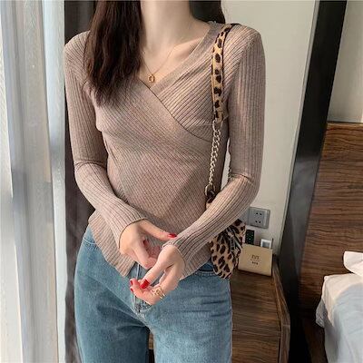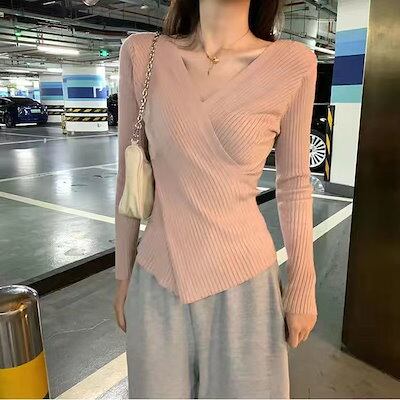 カシミヤタッチ ベーシックニット ニットセーター アンダーウェア Vネック ウエスト引き締め ブラウス レディース トップス 百掛け アウター クロス 長袖 シャツ 日焼け止め