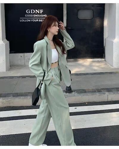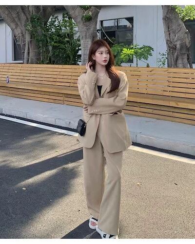 春秋 ムートンファッション 韓国ファッション スーツズボン スーツパンツ 上下セット レディース おしゃれ 気質 女神 職業 セット 韓国ファッション