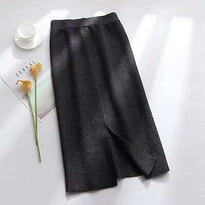 マキシスカート 脚魅せミニスカート マーメイドスカート 夕イトスカ一トスカート スリット 厚手 ニット ハイウエスト 着やせ