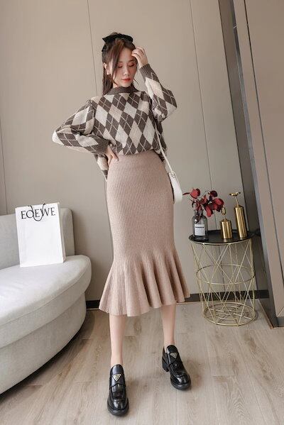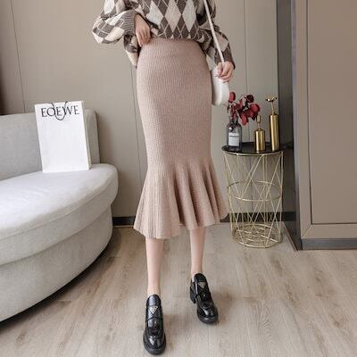 マキシスカート 脚魅せミニスカート マーメイドスカート 夕イトスカ一トスカート ニットスカート フィッシュテールスカート レディース スリム見え