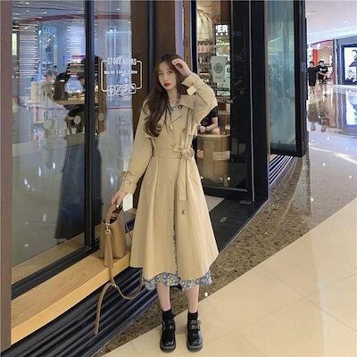 春 アウター コート 日系 ジャケット 百掛け トレンチコート 気質 ロング丈 スリミング トップス ロングコート 着痩せ アウター レディース