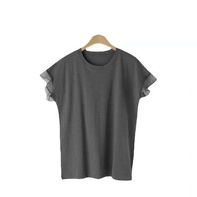 韓国ファッション 着痩せ 夏服 トップス ゆったり OL 通勤メッシュキルティングフリル シンプル半袖Tシャツ tシャツ レディース 6色今っぽシアーシャツ