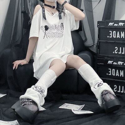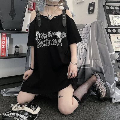 使える!シフォンブラウス Tシャツ 夏 新作 ちょうプリント 肩を出す ゆとりがある 半袖Tシャツ トップス