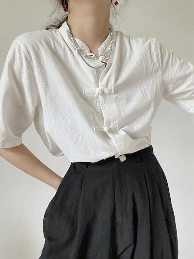 使える!シフォンブラウス 夏服OL 通勤韓国ファッション レトロ半袖綿麻上着シャツ婦人Tシャツ 半袖 tシャツ 半袖 レディース ブラウス トップス