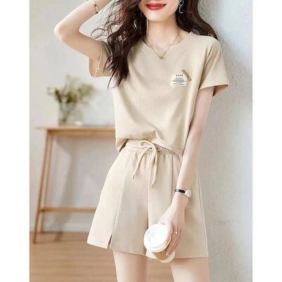 セットアップ レディース 夏 韓国 半袖 スポーツスーツレディース夏おしゃれTシャツショーツ2点セット ルームウェア セットアップ スウェット上下セット スーツ