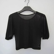 シースルートップス 新作OL 通勤 単層透明メッシュボトムシャツ女性の夏のへそ出しTシャツ女性の短いセクションチュールブラウス半袖