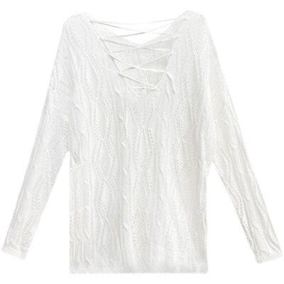 シースルートップス Vネックニット 夏 薄い ゆとりがある ブラウス着 長袖Tシャツ 日焼け止め uvカット 日焼け対策
