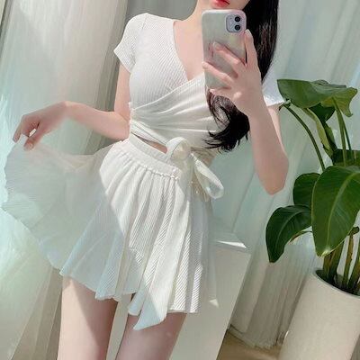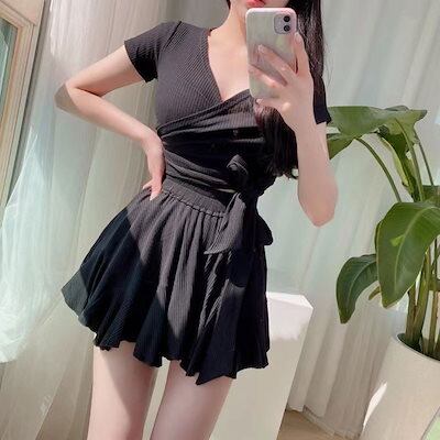 【3日以内出荷】水着 レディース 競泳 体つき別ハイウエスト半袖痩せ見え運動平角2点セット学生夏 ワンピース 体型カバー 韓国ファッション