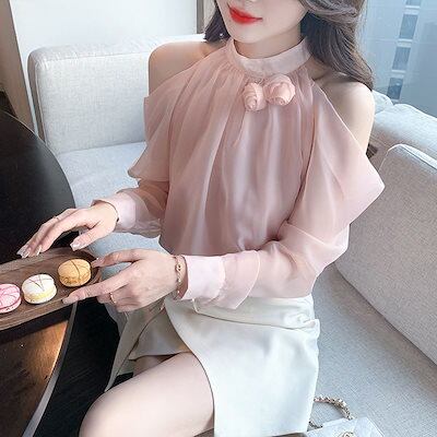 今っぽシアーシャツ レディース 2024年新作シフォンシャツカジュアル春ムード肩出し トップス 韓国ファッション