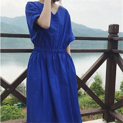 ワンピース レディース 韓国ワンピース2024夏新作Vネックロング腹巻ワンピース ドレス 韓国ファッション