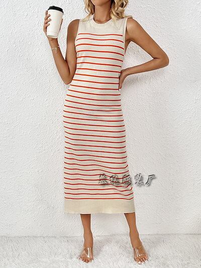ワンピース レディース 2024春夏新作トリムカラーニットストライプロングスカートおしゃれワンピース ドレス 韓国ファッション