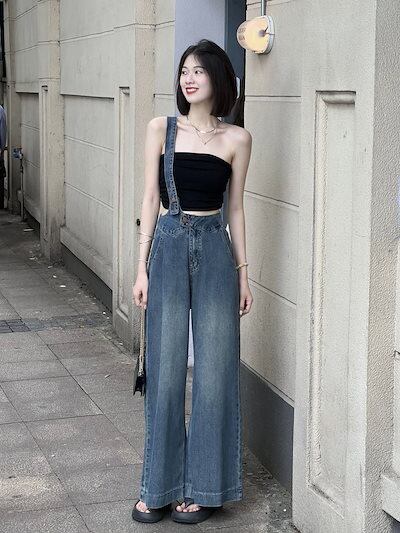 コーデ完成!サロペット 古代のデニムバックパックズボン女性2024薄くて汎用性の新しい韓国語バージョン 韓国ファッション