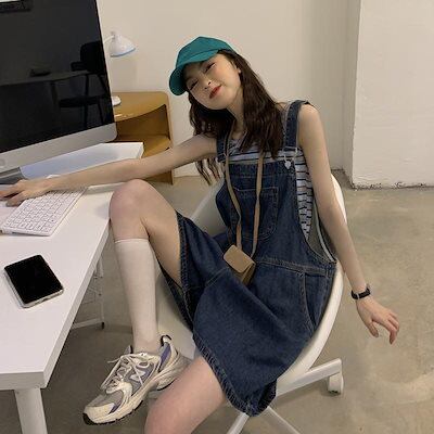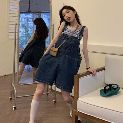 【3日以内出荷】コーデ完成!サロペット デニムバックパックショーツ女性夏ストレートワイドパンツ 韓国ファッション