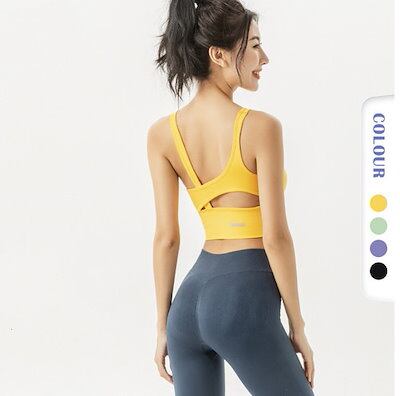 おしゃれヨガウェア お家ヨガウェア 新しいシームレス ニット スポーツヨガ下着 純色スポーツブラ固定カップス ポーツ トップス 韓国