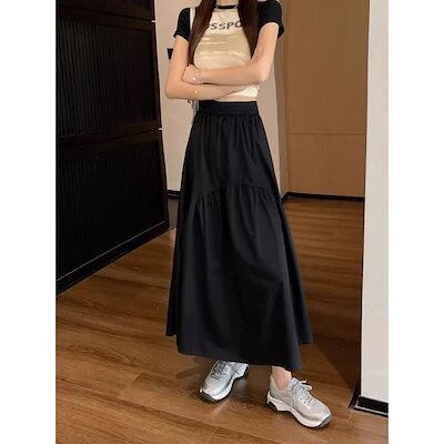 人气新作ロングスカート プリーツスカートOL 通勤 痩せ見え半身スカート夏の新ファッションプリーツジョイントでウエストをほぐす マキシスカート レディース