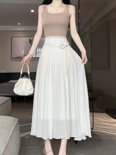 人气新作ロングスカート プリーツスカートOL 通勤 綿麻 夏 薄手 ミディアムスカートプリーツベルト 大振りスカート マキシスカート レディース