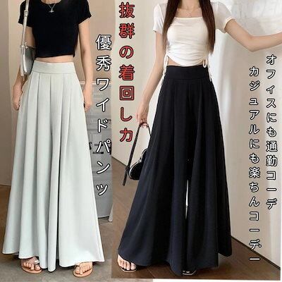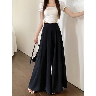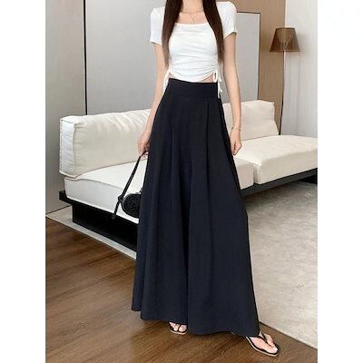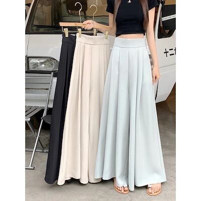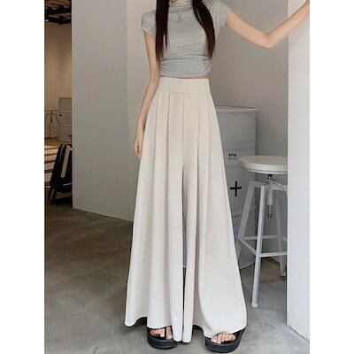 レディースワイドパンツ2024新型韓国版デザイン感プリーツパンツスカートハイウエストダウンで痩せ見えカジュアルキュロット女流