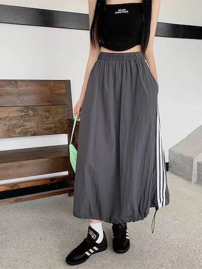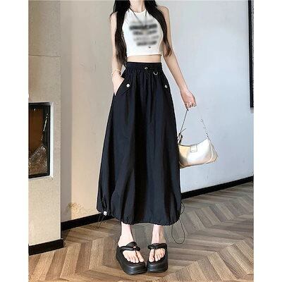 【3日以内出荷】人气新作ロングスカート プリーツスカートOL 通勤 オーバーサイズ ワークウェアハーフスカート 垂れ感ドローロープロング 夏 マキシスカート レディース