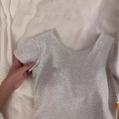 Tシャツ トップス 半袖 夏服 百合 修身 胸当て付き 上着 レディース 韓国