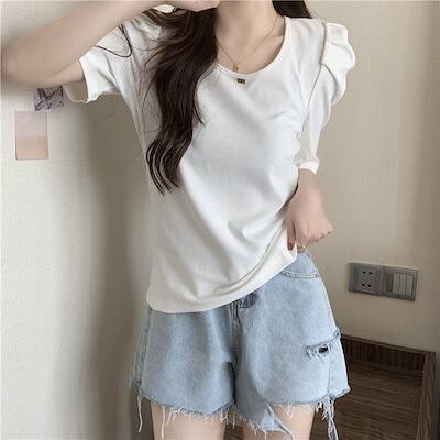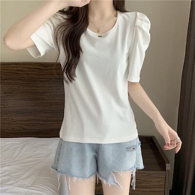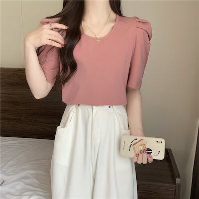 Tシャツ 綿 パフスリーブ 半袖 夏 ins 半袖 トップス 身だしなみ 減齢 洋風 できれい レディース 韓国