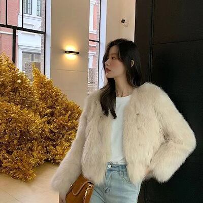 秋冬 毛皮アウター 新作 ファーコート レディー ショット丈 アウター Vネック 毛皮コート韓国ファッション トップス 防寒