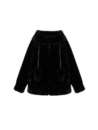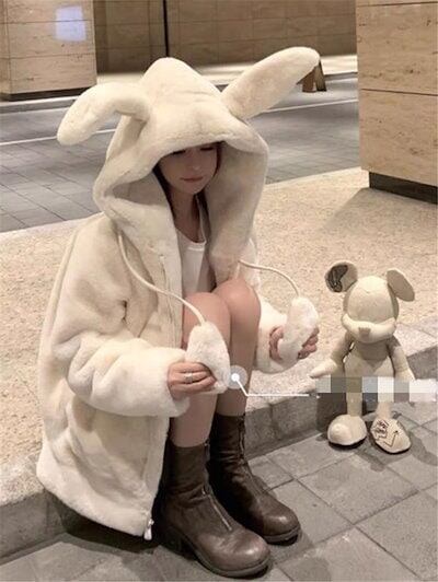 韓国 毛皮アウター ファッション 冬 可愛い 動くよ うさぎの耳 フェイクファー コート 厚手