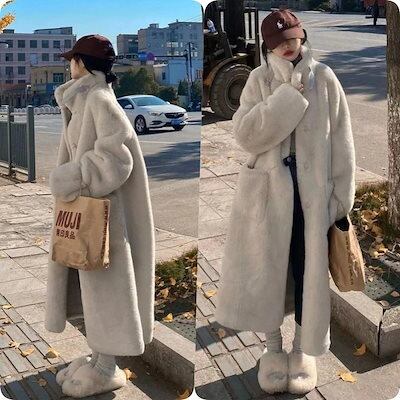 人気 アウター クリスマスジャケット 保温 秋冬 セミロング丈 韓国ファッション キルティングアウター 皮毛一体 防寒 フェイクラビットファー ふわふわ ゆったり フリース