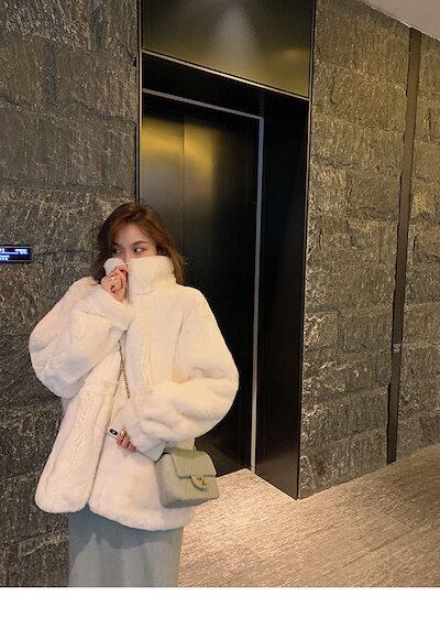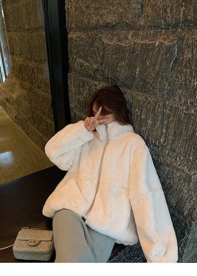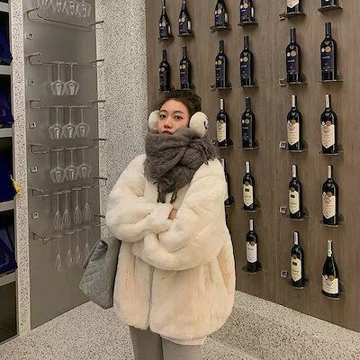 韓国 ジャケット保温 アウター 冬アウター 毛皮 ミンク アウター 厚手 レディース フェイクウサギファー 綿入れ セミロング トップス コート 韓国ファッション