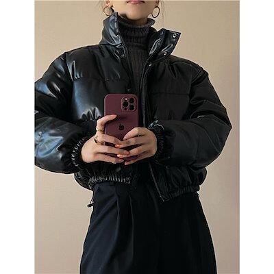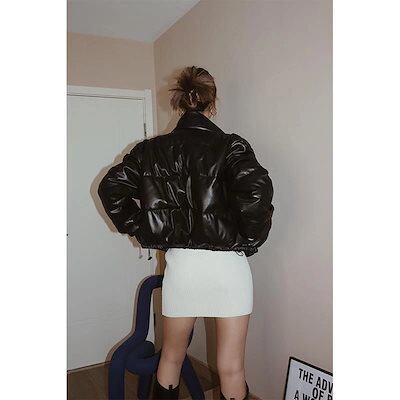 冬 ダウンジャケット 新しい ブラック PU ショート丈 中綿ジャケット レディース スリム 厚手 ファッション 保温 アウター