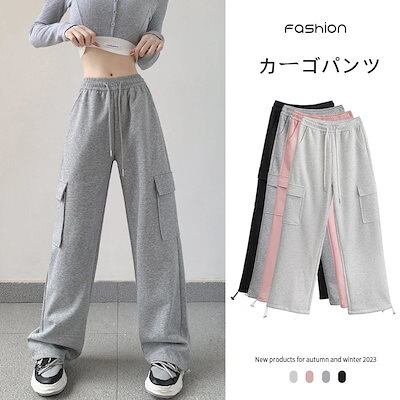 グレー カーゴパンツ 韓国 人気 カーゴパンツ レディース レディース 秋冬 薄い ワイドパンツ ハイウェスト カジュアル スウェットパンツ