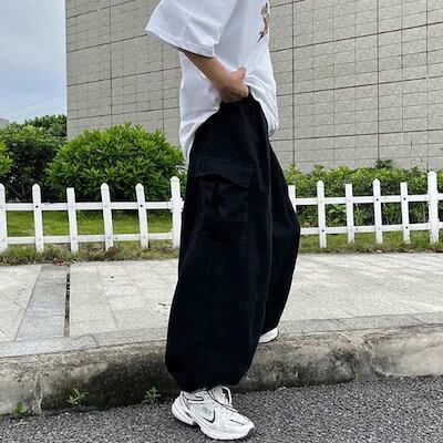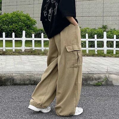 着? カーゴパンツ レディース 韓国 無地大きいサイズカーゴパンツメンズ春秋メンズサイドポケットワークパンツカジュアルパンツワイドシルエッ