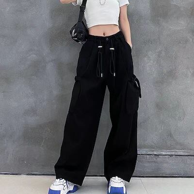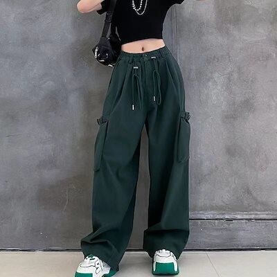 カーゴパンツ レディース 韓国 人気 ボトムス ワイドパンツ レディース ストリート ヒップホップ ハイウエスト カーゴパンツ 男女兼用