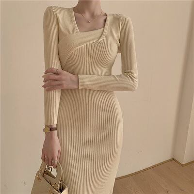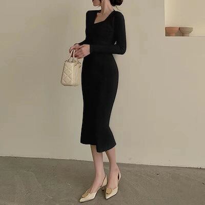新作 人気 ニットワンピ 2wayワンピース脚魅せミニスカートタイトスカートニットワンピース 修身 ワンピース女性 ニットコート気質痩せvネクタイヒップスカート