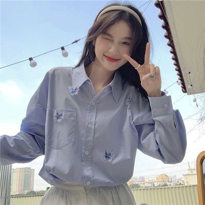 人気 今っぽシアーシャツ ブラウス 秋 学生 韓国ファッション 長袖ゆったり着痩せシャツ上着 ブラウス