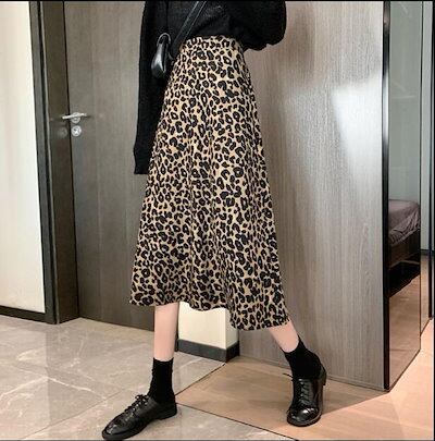 レオパード柄スカート ヒョウ柄 スカート 秋 ボトムス レオパード 柄 フレアスカート ロングスカー
