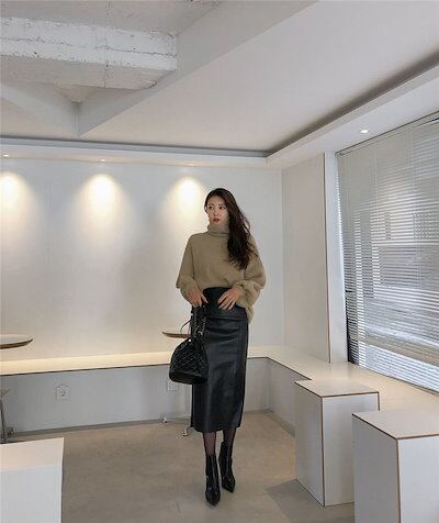 着? 人気 通勤する レザースカート 秋新作 ハイウエスト 中長セクション スプリット スカート