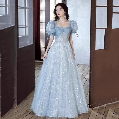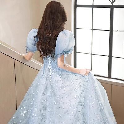 2024新品追加パーティドレス ブルー ワンピース 韓国ファッション プリンセススカート 卒業式 結婚式 誕生日 演奏会 花嫁 司会 ホスト パーティー