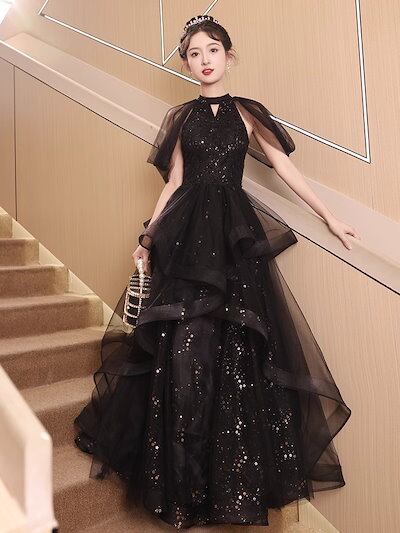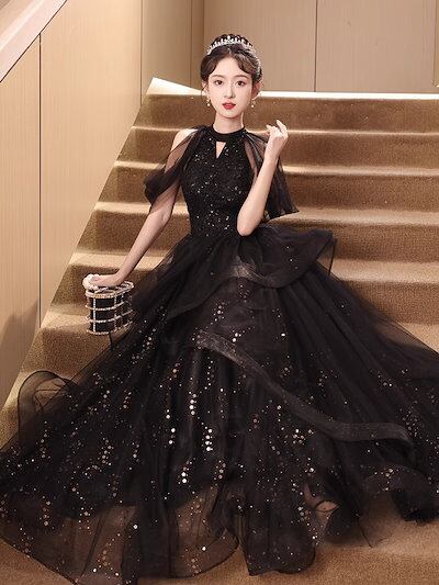 2024新品追加パーティドレス ブラック ワンピース 韓国ファッション 卒業式 結婚式 誕生日 演奏会 花嫁 司会 ホスト パーティー