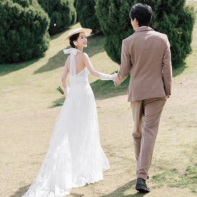 韓国新作追加!!! 結婚式 ドレス ワンピース フレンチレース ウエディングドレス フィッシュテールスカート 花嫁 披露宴 二次会 謝恩会 発表会 演奏会 女子会